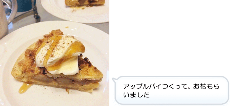 「彼氏にアップルパイを作ってもらいお花をもらいました」