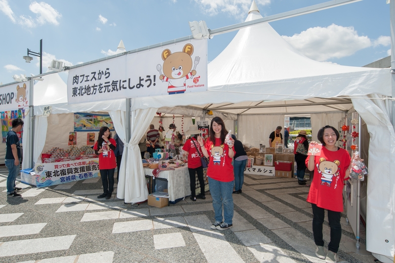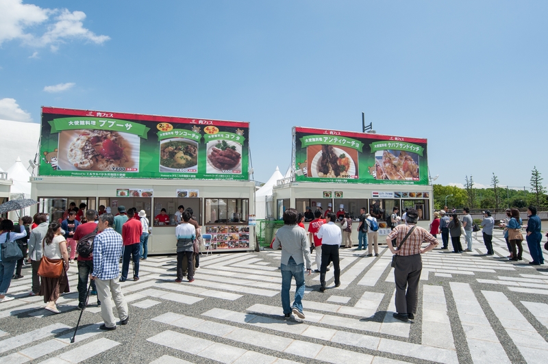 「肉、たりてる?」をスローガンに、全国各地の肉料理の名店・人気店が一堂に会し、ステーキや唐揚げ、焼き鳥、すき焼きなどを販売するブースを出展、地ビールをメーンにしたドリンクコーナーも設けられた。ペルーやドミニカ、エジプトなどの大使館も参加し、各国の代表的な肉料理を紹介した。期間中ブースには終日長蛇の列ができ、来場者は普段味わえない料理に舌鼓を打った。また東北の復興支援を目的に、地域の物産を販売するコーナーも展開した。