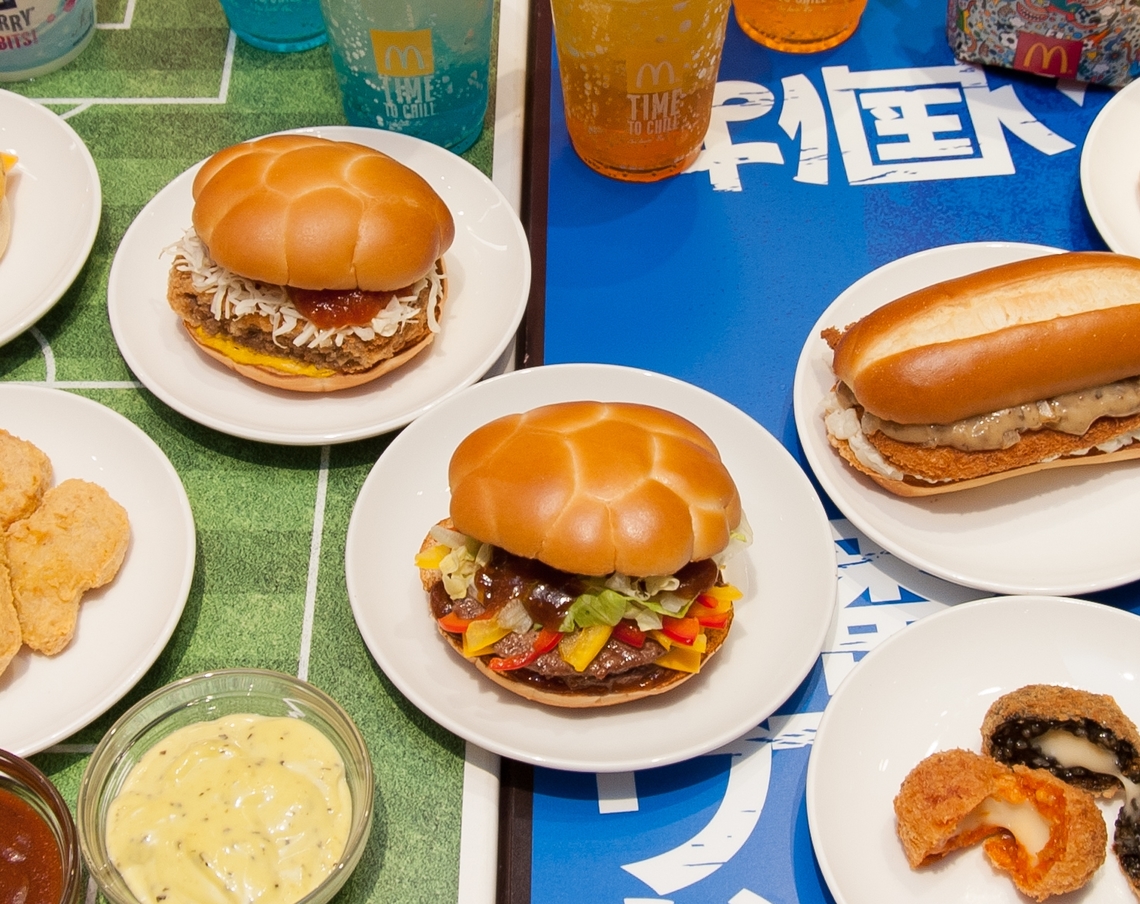 同社はブラジル大会の開催を記念して“一番ウマい国はどこだ。”をコンセプトに、「ブラジルバーガー ビーフBBQ」や「ジャパンバーガー ビーフメンチ」などハンバーガー4種類をはじめ「イタリアン リゾットボール」などのサイドメニュー、炭酸ドリンクやデザートなど、出場8カ国をイメージした全14種類の商品を5月27日から期間限定で順次発売する。また、マックフライポテトのパッケージをワールドワイドで特別仕様とし、世界中のアーティスト12人の作品をプリントした。