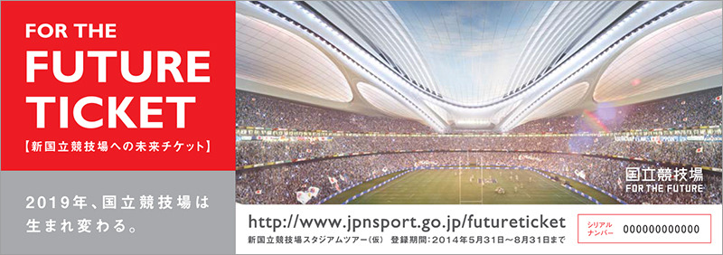 来場者数は3万6116人。入場チケットは、シリアルナンバー付きの「FOR THE FUTRE TICKET 新国立競技場への未来チケット」になっており、記載されたURLにアクセスしてナンバーを登録すると、新国立競技場の完成時、内覧会への招待状が届く仕組み。国立競技場を、スポーツを愛する人々は5年後に再び、この地に帰ってくる。