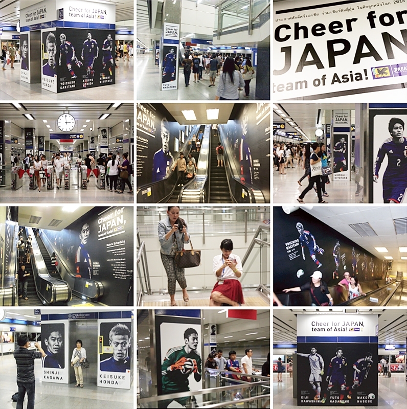 このキャンペーンは、「Cheer for JAPAN, team of Asia!」企画の第1弾として同所のみで展開されているが、今後はアジアの他国でも検討されている。次はどの国にSAMURAI BLUEが出現するだろう。JFAの公式YouTubeチャンネル・JFATVでは、タイ地下鉄でのキャンペーン動画が視聴できる。楽曲には、サッカー好きとして有名な Mr.Children 桜井和寿さんとラッパー GAKU-MC さんによるユニット「 ウカスカジー 」が制作したサッカー日本代表応援ソング「勝利の笑みを 君と」を使用し、心浮き立つ動画に仕上がっている。