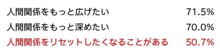 今回のアンケートでも、人間関係をもっと広げたい、深めたい、と7割以上の大学生が思う一方で、「リセットしたくなることがある」という回答が2人に1人という結果に。人間関係を遮断したいということではなく、整理して再構築したい欲望と読み解くと、例えば今年、カップルや親しい友人とだけつながる「クローズドSNS」が話題になったのもその一端かもしれません。つながりを再構築するもの、つながりの質を高めるもの、そういった行動や消費が今以上に増えていくのではないでしょうか。