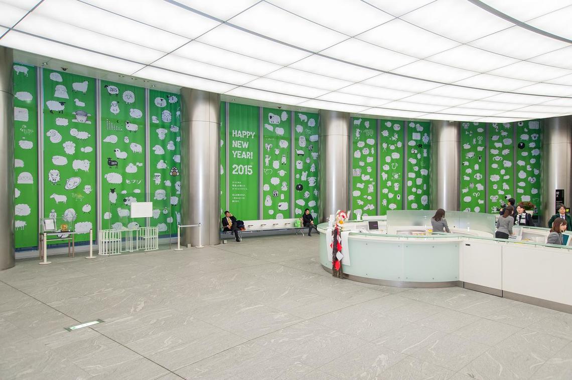 ニュース公開日: 2015/01/070322匹の“メエ~”画 電通ロビーの新年を彩る#経営/企業#クリエイティブ#電通#電通トピックス#Good Entrance#クリエイティブ前の記事次の記事 電通本社ビルのロビーをキャンパスに、社員自らがクリエーティビティーを発揮していく「Good Entrance, Good Innovation.」プロジェクト。2015年の第1弾は、ひつじ年にちなんだ企画が用意された。 年男・年女の電通社員から羊のイラストを募って、全長約23メートルにおよぶ緑色のバナーの上に“放牧”。ゆるキャラ調のものから、創意工夫を凝らしたものまで、思い思いの羊が群れをなしている。 全部で322のイラストが飾られているとのことだが、数える際は眠気にご用心。 参考記事: Good Entrance, Good Innovation.エントランスから始める電通のイノベーション[2014.11.12]
