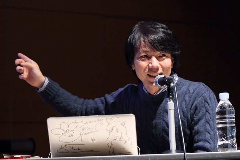 川田: 肩書は「AR三兄弟の長男」…と言いたいところですが、厳密に言うと開発者です。プログラムや企画、設計書や文章を書きながら、技術をエンターテインメントに翻訳し、エンターテインメントを技術に持ってくることをしています。昔からマンガと現実の境界があまりなくて、僕が持っているドラえもんの「ひみつ道具大事典」には、実現できるかもと思う道具にたくさんふせんが貼ってあります。虚と実の間で生きてます(笑)。齋藤さんがアートとコマーシャルの橋渡しなら、僕はお茶の間寄りなんだと思います。フジテレビの深夜アニメ番組「ノイタミナ」や、TBS系「情熱大陸」で実施した「AKB48リアルタイム総選挙」、ARを使った音楽のプロモーションの企画など、ARを使ったり使わなかったりしながら、メディアを拡張しています。(スマホを取り出し)これは忘年会用に作ったもので、ARとVRの間にある「TR」(手書きリアリティー)と言います。例えば今ここで、紙に「1600年」と書いてみましょうか。ここにスマホをかざすと、関ヶ原の戦いの映像が流れ始めて…。あとはラジオ局の周波数を書いてかざすと、その局のラジオが流れたり…。分かりますかね?ここにエジソンがいたら、爆笑なんですけどね。