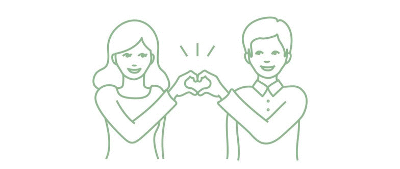 2人でイラストのようなジェスチャーをすると相性占いを体験することができる。