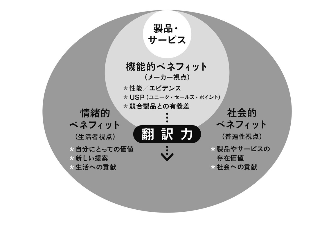 この価値を変換する力は、製品と価値をつなぐ翻訳力と定義すると理解しやすくなります。