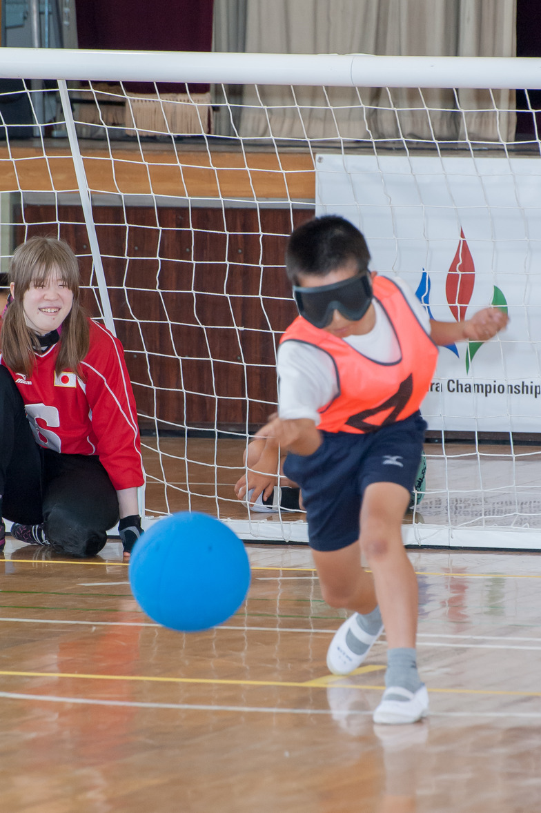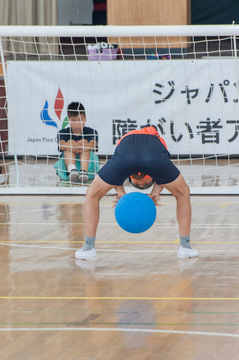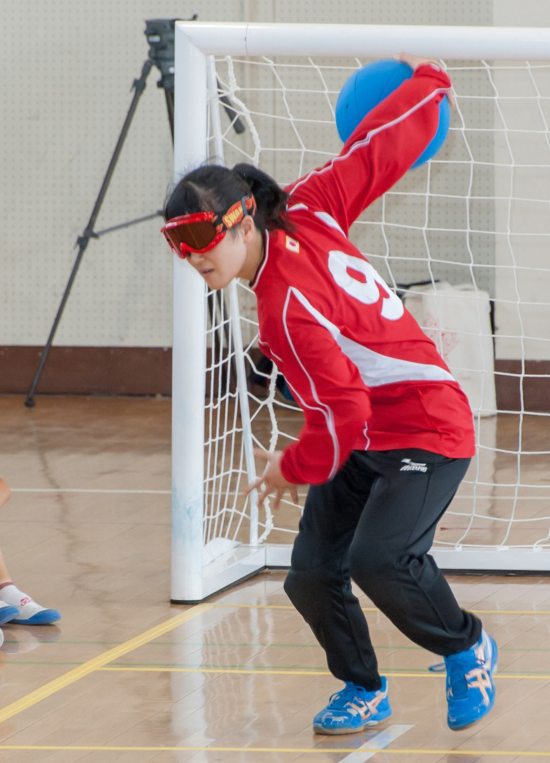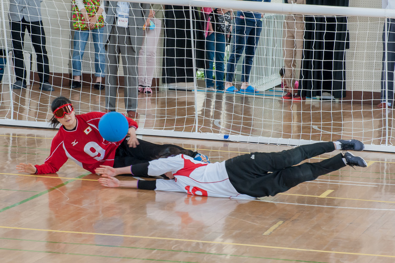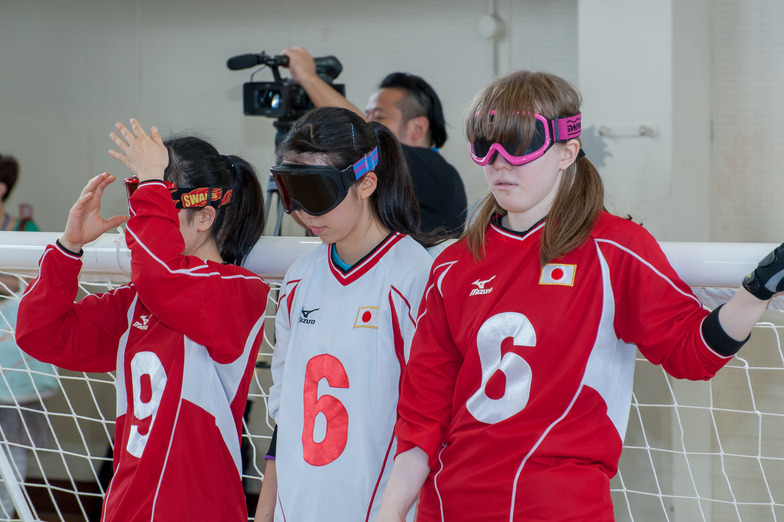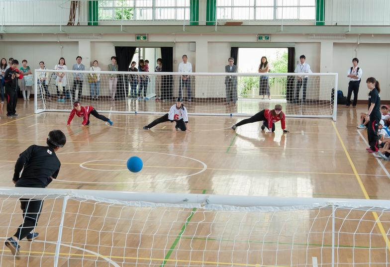 ゴールボールは、視覚障害の選手による対戦型のスポーツで1チーム3人で構成される。