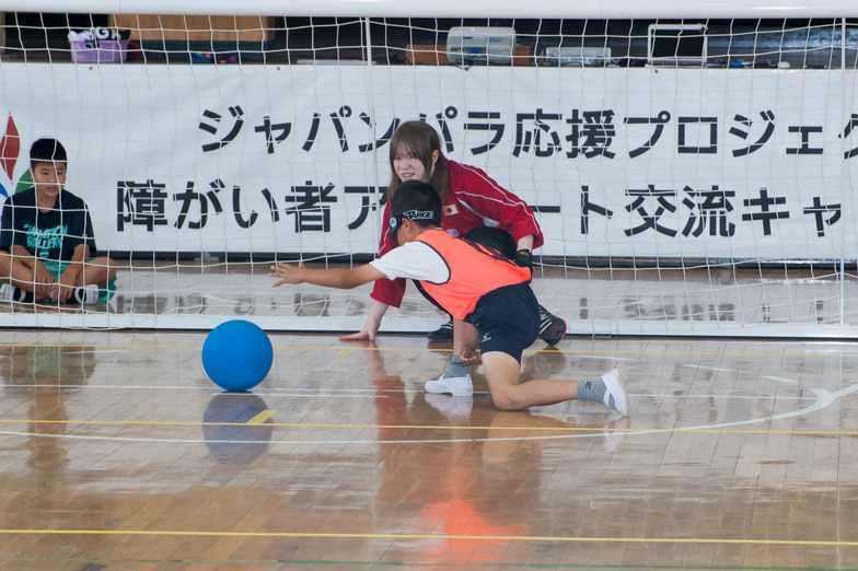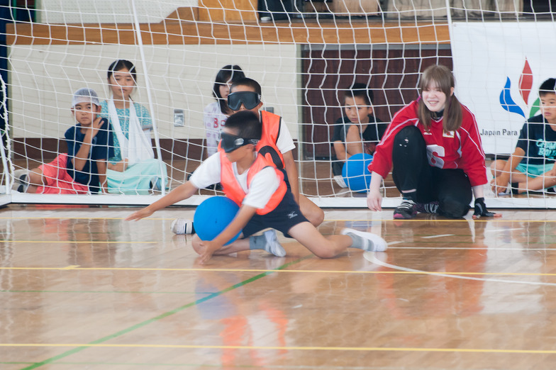 選手によるデモンストレーションでは、その俊敏な動きに児童たちは驚いた様子。その後、日本ゴールボール協会(JGBA)・池田貴理事の指導の下、投球や守備を練習した。ミニゲーム体験では、その楽しさから大きな声援が飛び、先生チーム対選手の試合では応援合戦が繰り広げられた。