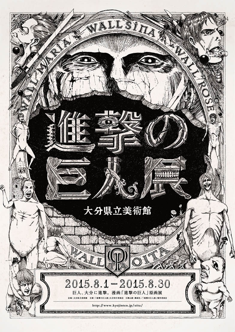 累計発行部数が5000万部を超え、国内外で一大ブームを巻き起こしているコミック「進撃の巨人」。8月1日からは、大分市の大分県立美術館で「進撃の巨人展 WALL OITA」が始まった(8月30日まで。主催=「進撃の巨人展」大分実行委員会)。昨年25万人を動員した東京・上野の森美術館に続く開催となる。大分県は原作者・諫山創氏の故郷でもあり、ファンにとってはいわば“聖地”。今回は美術館だけでなく、街の中でも「進撃の巨人」を楽しめる工夫が施されている。