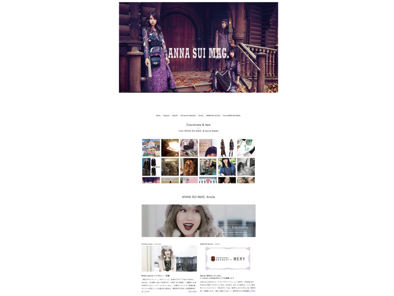 三越伊勢丹ホールディングスは、8月13日WEBライフスタイル・ファッションマガジン「ANNA SUI MAG.」を創刊した。ファッションブランドANNA SUI日本上陸20周年を2016年に控え、日本のファンへの感謝と、新たなファンとの出会いへの思いを込めて制作する。誕生の地であるニューヨークのトレンド情報や東京のおしゃれな人たちの買い物情報などを発信する「“IT”な〇〇」や、Twitter上のファッションに関するデータを解析し、4大コレクションや都市別のトレンド・兆しなどを分析する「ソーシャルファッショントレンド」、ファッションインフルエンサーへのインタビューなど、ファッション感度の高い層からファッション業界人まで、広く楽しめる記事を定期的に配信する。また、TwitterやInstagramなど世界中のソーシャルメディアに投稿されるANNA SUIに関する話題、コーディネートやアイテム画像を一元的に集めるソーシャル・ハブ機能、ソーシャルと連動して商品が買えるソーシャルコマース機能など多様なコンテンツや機能を提供していく。