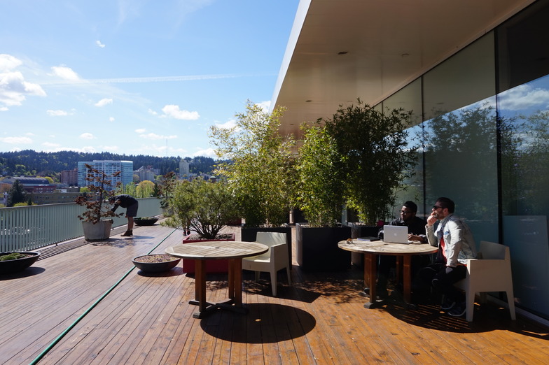 オレゴン州ポートランド本社は地上6階建て、倉庫を改造してつくられた。大きな窓越しに広がる西海岸の澄み切った青空と、まぶしい日差しに照らされた開放的 な空間で、約700人がクリエーティブワークにいそしむ。社員の合言葉「Fail Harder」を掲げた壁画は、W+K 12の生徒が数百時間をかけ、透明な押しピン約12万個を使って製作したもの。