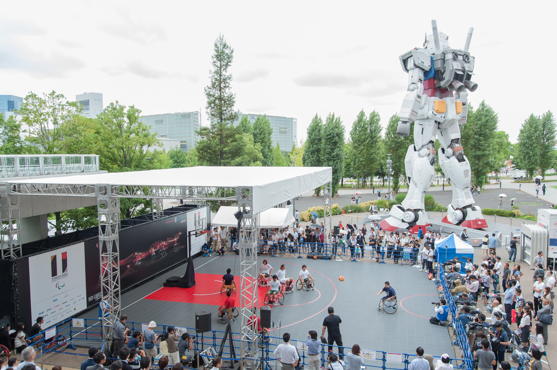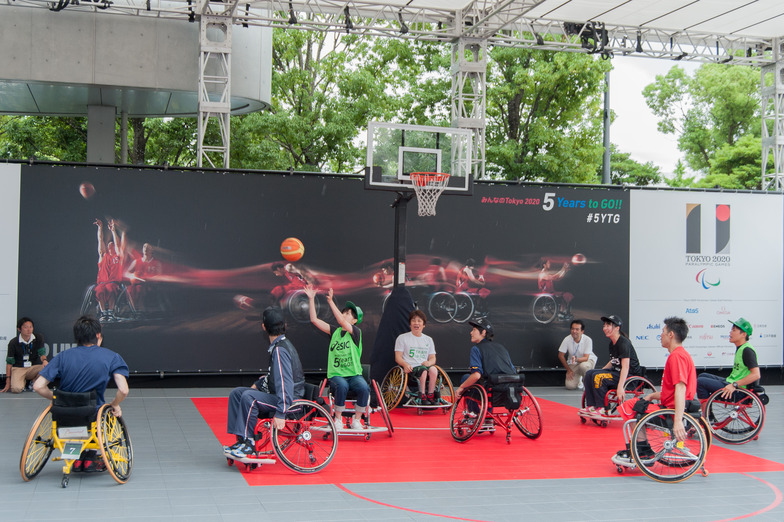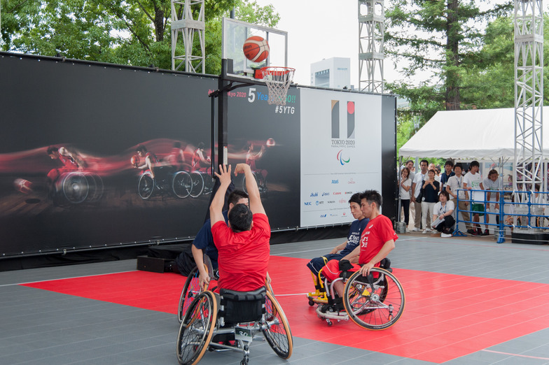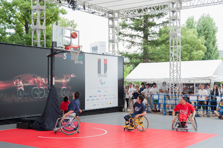 東京都と東京オリンピック・パラリンピック競技大会組織委員会は8月25日、江東区のダイバーシティ東京で東京2020パラリンピックのカウントダウンイベント「みんなのTokyo 2020 5 Years to Go!!」を開催した。同日が東京パラリンピック大会開幕の5年前に当たることから、競技の魅力を知ってもらうことを目的に行われ、車椅子バスケットの選手らがパフォーマンスを繰り広げた。