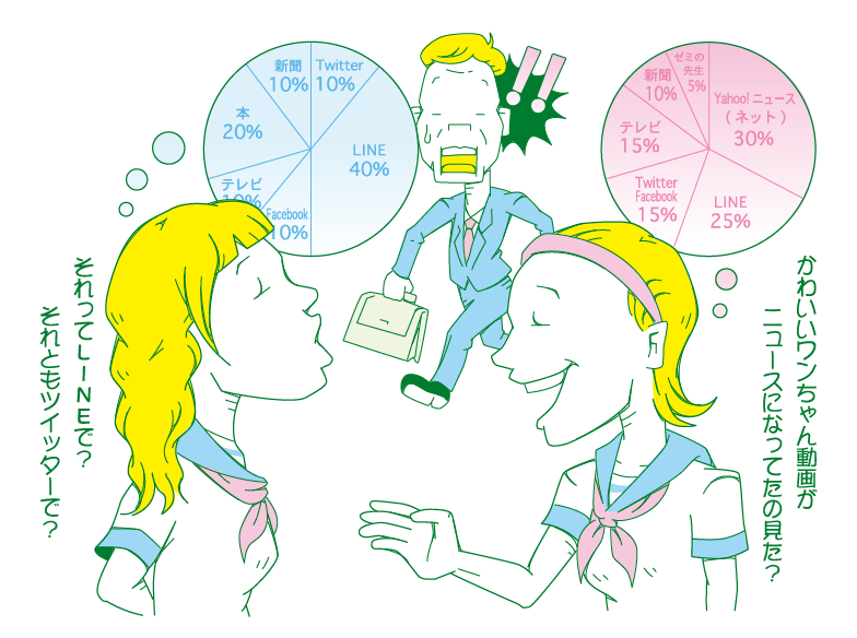 奥:ニュースがニュースではないんですよね。これは私が講演などで4〜5年前から触れているんですが、今の若者は半径3㍍くらいの身の回りのこと、具体的には「かわいい犬の動画を見つけた」「友達に彼氏ができた」といったこともニュースで、われわれがニュースと言っているテレビや新聞で取り上げることは、「世の中で起きてる出来事」として区別している。自分に身近なことがニュースで、それ以外は世の中の出来事。これが裏付けられたような結果です。