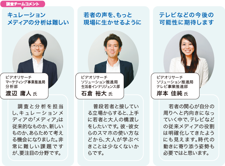 VR・渡辺:前回の「スマホと日本人」では、LINEをハブにして、10秒以内に別のアプリ、そしてLINE、また別のアプリといった利用行動をしているという実態をご紹介しました。ティーンや20〜30歳代は、非常に忙しくコミュニケーションしながらニュースなどの情報に触れている。今回実施した調査「キュレーション時代のニュースとメディアのゆくえ」は、どんなメディアが見られ、どんな情報が消費されているかにニュースという切り口から迫りました。
