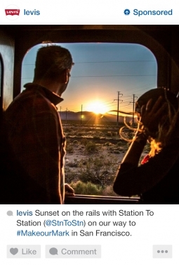 広告の写真やビデオには右上に「Sponsored」と記され、そのブランドをフォローしていないユーザーにも提示される。アディダス、リーバイス、レクサス、GE、バーバリーなど、すでにインスタグラムを活用しているブランドが広告主となる(写真はリーバイスの広告イメージ例)。