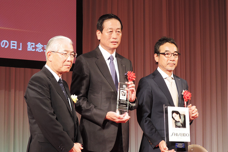 新聞広告賞贈賞式では、9月3日に発表された広告主部門の広告大賞、広告賞、優秀賞と新聞社企画部門の広告賞、奨励賞が授与された。「2015企業広告 50 selfies of Lady Gaga」で大賞を受賞した資生堂の魚谷雅彦社長は「難しい企画だったが、チームワークで実現できた。日本を代表するようなコミュニケーションとマーケティングの世界を追及したい」と謝辞を述べた。