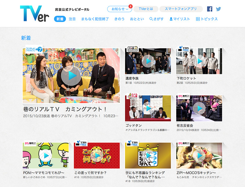 在京民放5社(日本テレビ放送網、テレビ朝日、TBSテレビ、テレビ東京、フジテレビジョン)は10月26日、民放公式テレビポータル「TVer(ティーバー)」(tver.jp)を開始した。