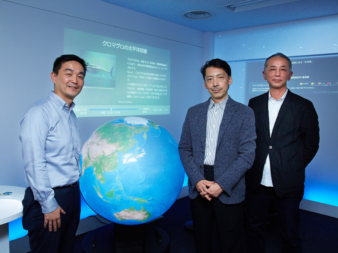 日本食というのはものすごく微に入り細に入り、繊細な面を持った食の文化だと思うんですけれど、ある種目線を変えると地球規模のソリューションになり得るというイメージを、万博に来た世界各国の方に持ち帰っていただきたいと思ったのです。竹村先生がつくられているデジタル地球儀「触れる地球」を最大限に生かすには、メインスクリーンのコンテンツにも地球をテーマに置き、融合した内容を印象に残そうと考えました。