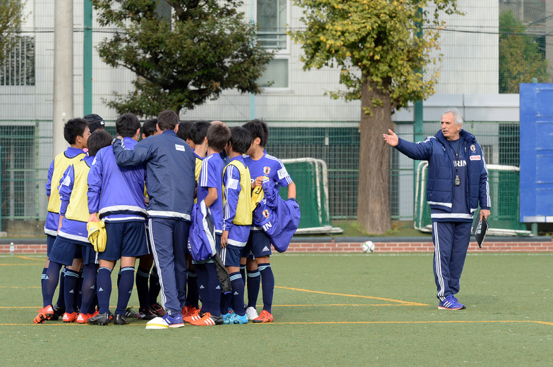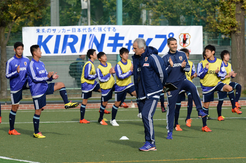 キャンプは1泊2日で、多数の応募の中から選考された男子中学生30人が参加。栄養管理などの講義を受けたり、ハリルホジッチ監督の他、SAMURAI BLUEのコーチであるジャッキー・ボヌベー氏やフィジカルコーチのシリル・モワンヌ氏、浜野征哉GKコーチ、前田弘アスレティックトレーナーの直接指導の下、トレーニングに励んだ。
