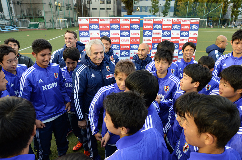 同グループは、長年にわたりサッカー日本代表の応援活動を継続中で、今年5月に展開した「応援WEEK2015」(http://dentsu-ho.com/articles/2576)では、ファン、サポーターから“未来の日本代表を強くする”アイデアを募集。協議の結果、若い選手がトップレベルの哲学に触れ、世界を肌で感じてもらう機会をという思いから、日本代表のハリルホジッチ監督らが、中学生を直接指導するサッカー合宿「KIRINキャンプ」の実施が決定した。(http://dentsu-ho.com/articles/3017)