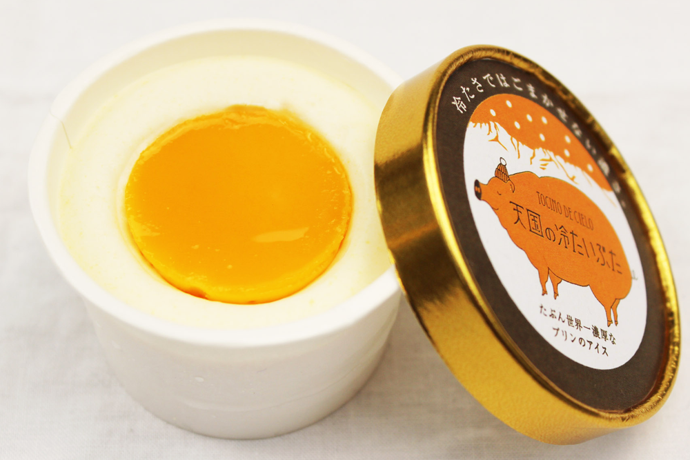師走の寒い日が続きますが、季節外れのお知らせです。以前も何回かご紹介している群馬県の山高食品さん。「天国のぶた(プリン)」「天国のブタリーナ(エッグタルト)」と玉子職人にふさわしいスイーツを次々開発してまいりました。その最新作が「天国の冷たいぶた」。なぜかこの寒い時期に期間限定発売するアイスです。なんと言っても自慢はそのルックス。もちろん黄身に見えるのは超濃厚玉子プリン、天国のぶたです。