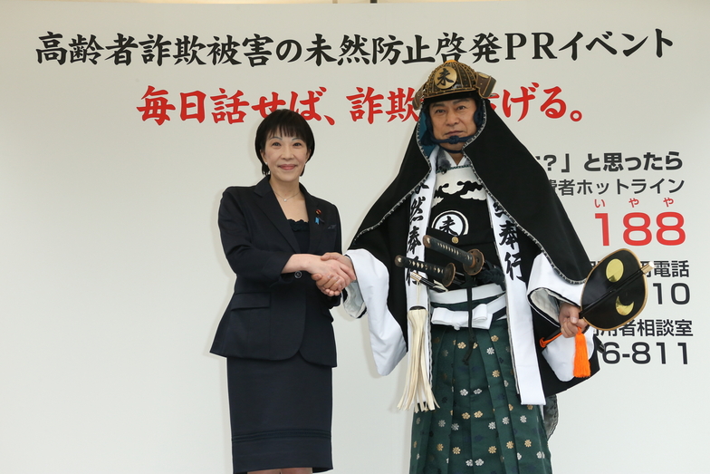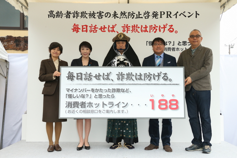 内閣府が中心となり消費者庁、警察庁、金融庁が連携して取り組む「高齢者詐欺被害の未然防止」啓発キャンペーンが12月3日にスタートし、同日、東京・豊島区の巣鴨地蔵通り商店街入り口にある「すがもん広場」でPRイベントが行われた。