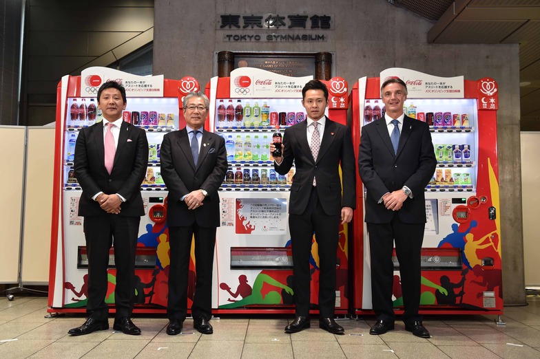 ニュース公開日: 2016/01/120あなたの一本がアスリートを応援する 「JOCオリンピック選手強化支援プログラムwith コカ・コーラ」が始動!#メディア/コンテンツ#アスリート#JOC#オリンピック・パラリンピック前の記事次の記事 日本オリンピック委員会(JOC)は1月8日、オリンピックを目指すアスリートの強化とオリンピック・ムーブメントを支援する「JOCオリンピック選手強化支援プログラムwith コカ・コーラ」の実施に伴い、同プログラムで活用される「JOCオリンピック支援自販機」の記者発表会を渋谷区の東京体育館で行った。同自販機の1号機は、同月12日に同体育館の敷地内に設置された。 プログラムは、JOCのメッセージポスターを掲示した自動販売機や、オリンピック競技をデザインしたオリジナルラッピングの「JOCオリンピック支援自販機」でコカ・コーラ製品を購入すると、売り上げの一部が寄付されるもの。寄付金はコカ・コーラの各ボトリング会社を通してJOCに寄付され、リオデジャネイロオリンピックで活躍が期待される参加28競技団体のアスリートのために役立てられる。 竹田会長 ブレット社長 井上常務 北島選手 冒頭、JOCの竹田恆和会長は「このプログラムは選手の強化のみならず、多くの方の声援がアスリート自身の力になると確信している。JOCはリオ大会に向け、各競技団体と力を合わせ、コカ・コーラ社の協力の下で目標達成に最善の努力をする」とあいさつした。 日本コカ・コーラのティム・ブレット社長は「コカ・コーラは1928年のアムステルダム大会以降、世界中でオリンピックをサポートしている。今回、支援自販機1号機を設置できたことは、オリンピックワールドワイドパートナーとしての活動の歴史の新たな1ページだ」と述べた。 コカ・コーライーストジャパンの井上豊常務は、同プログラムには全国のボトリング会社が参加し、2020年までに3000台の設置を目標にしていると表明。また自販機には、使用方法、商品や日本の硬貨の説明など15カ国の言語で対応する機能を搭載したと明かした。自販機は今後、JOCや競技団体の関連施設、自治体施設、学校、オリンピックパートナー企業、空港・駅などの公共施設に設置が予定されている。 会場に駆け付けた競泳の北島康介選手は、リオ大会へ向けた決意や東京大会への思いを語り、プログラムについて「未来の金メダリストを育てる意味でも、支援自販機を利用してほしい」と話した。北島選手は登壇者4人による自販機の除幕後、自ら自販機でコカ・コーラを買い求め、初めての購入者となった。 プログラム特設サイト:http://www.joc.or.jp/donation/athletes_02/