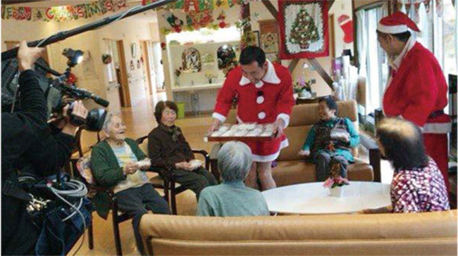 阿蘇市乙姫地区では、今年新たな試みが実施された。昨年12月11日、同プロジェクトで生産したもち米で作ったお餅を、クリスマスプレゼントとして同地区の一人暮らしやグループホームの高齢者に届けるというもの。サンタクロースに扮(ふん)するのは吉本興業所属のもっこすファイヤーの2人。サンタの訪問を受けた高齢者は「お正月に食べるのが楽しみ」と満面の笑みで思いがけないプレゼントを手にした。