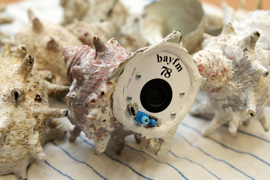 ニュース公開日: 2016/03/250ベイエフエム 本物のサザエで作った 「SAZAE RADIO」を開発!#メディア/コンテンツ#ラジオ#FM局前の記事次の記事 千葉県を拠点とする独立系FMラジオ局の「bayfm(ベイエフエム)」は、同県館山で採れたサザエの貝殻を使ったFM用チューナー「SAZAE RADIO(サザエラジオ)」を開発し、数量限定で販売する。 3月23日に東京・中央区で行われた商品発表会で、小縣正幸編成局次長は開発のきっかけについて「当社は三方を海に囲まれた立地であり、以前から海に関するものとコラボできないかと考えていた。港でサザエの貝殻を目にしたとき、人が貝殻を耳に当てているイメージが浮かび、そこからラジオの音が流れたら面白いのではと思ったのがスタートだった」と語った。 小縣次長(右)と吉田氏 オリジナルの電子基板を開発 サザエの貝殻は県内の漁協から提供を受ける。サザエは漂白や天日干しなどできれいに仕上げるが、貝殻の収集や金ブラシで磨く工程は小縣次長が自ら行うという。電子基板は、個体差のあるサザエの内部に組み込めて、かつ上質な音を実現できるものをオリジナルで開発した。同社技術担当で、ラジオの開発を担当した吉田八郎氏は「ラジオ局として音質にはこだわったため、スピーカーを大きなものにした」と説明し、基盤の組み込み作業の苦労などを明かした。 ラジオは電源スイッチ、音量調整、選局といったシンプルな機能で、USBで充電が可能。ワイドFMにも対応している。サザエラジオは限定100個が販売される。4月1~30日に特設サイト(http://www.bayfm.co.jp/sazaeradio/)で申し込みを受け付け、応募多数の場合は抽選となる。ラジオは四角いものという常識を覆すサザエラジオに注目が集まりそうだ。 同社では今回の販売開始に当たり、番組パーソナリティーとプロジェクト担当者を起用したウェブムービー「New Radio Device from the Sea.」編を制作し、3月23日から特設サイトとYouTubeのベイエフエム公式チャンネルで公開している。実はサザエ好きの斎藤工さんや槇原敬之さん、押切もえさんらがサザエラジオを手にした感想や笑顔を約3分の動画にまとめた。