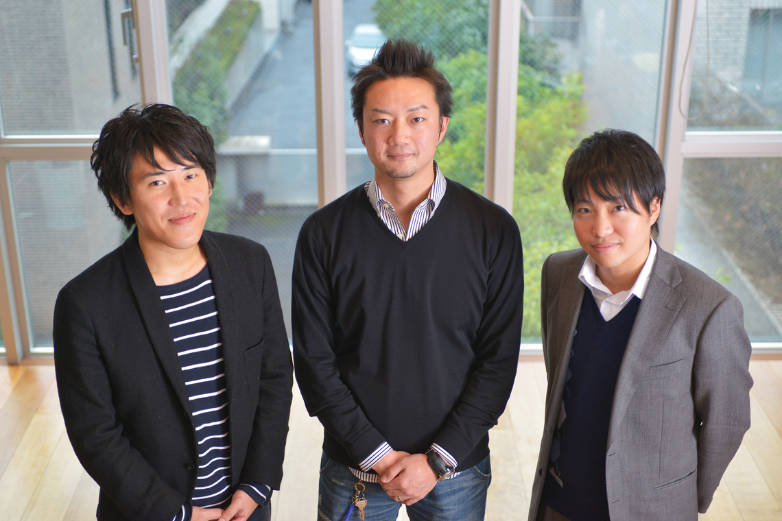 電通のデータマーケティング領域をリードするプランナー2人がエンジニア、マーケター、事業開発担当など多彩なバックグラウンドを持つ酒井氏(中央)が代表を務めるLegolissを訪ねた