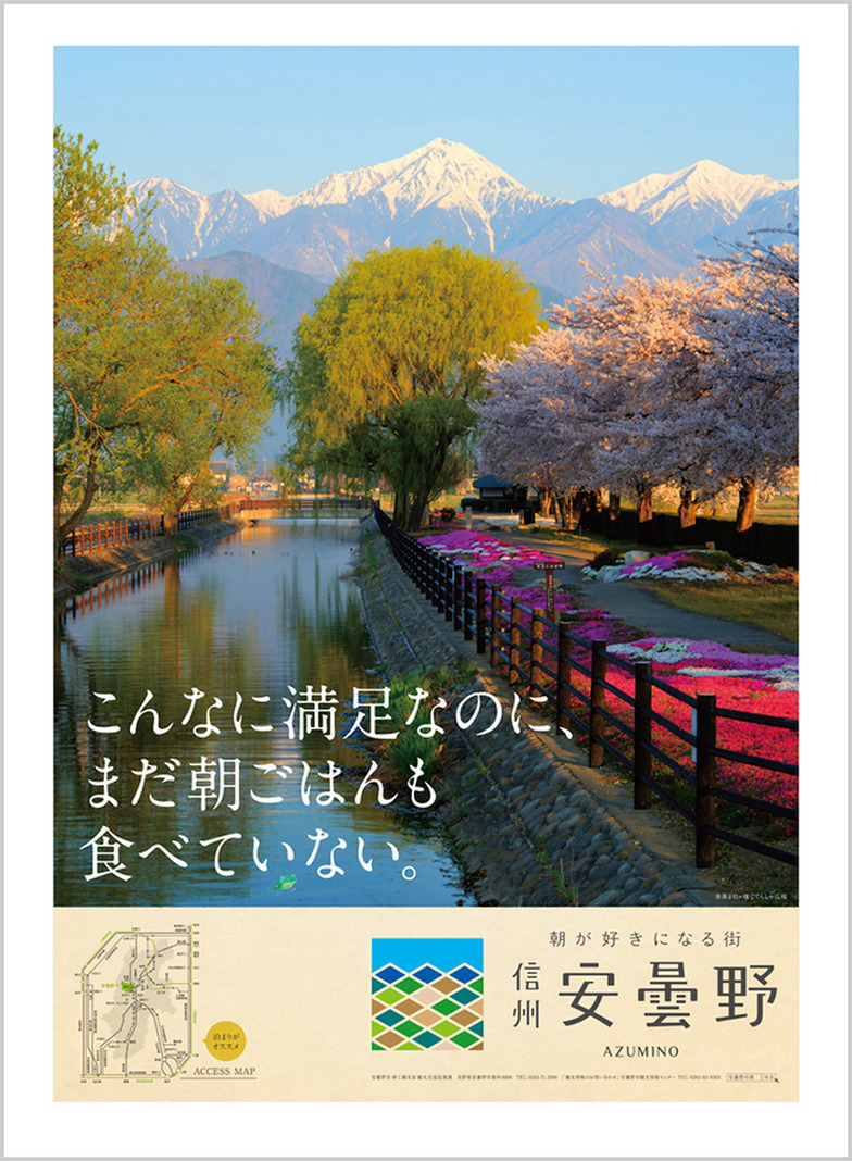 ツボをおさえる「目」のつけどころ [1]公開日: 2016/05/200「時間帯」 の魅力にフォーカス 「朝が好きになる街 安曇野」キャンペーン目のつけどころ#マーケティング#広告#経営/企業#顧客体験#デジタル/テクノロジー#クリエイティブ#社会課題#アイデア/発想法#地方創生#月刊電通報#課題解決次の記事 多岐にわたる地域の課題解決に向けて、今、多様な取り組みが各地で展開されています。 的確な課題抽出と、独自の着眼点から繰り出す卓越した打ち手からは、さまざまなヒントが見えてきます。キーパーソンへのインタビューとともに事例を紹介します。 長野県 安曇野市 長野県のほぼ中央に位置する安曇野市は2005年10月、五つの町村が合併して誕生した。西側にそびえる雄大な北アルプスや豊富な湧き水、澄み切った青空、わさび田などが海外からの旅人をも魅了する。しかし、観光スポットを訪れた後、宿泊せずに次の観光地へと移動する人も多い。市民自身の日常から浮かび上がった新たな魅力を切り口とした、同市のブランディング施策とは…。 「時間帯」の魅力にフォーカス 「朝が好きになる街 安曇野」キャンペーン 安曇野市は2015年3月、「朝」をテーマにした、新しい市のロゴとキャッチフレーズ「朝が好きになる街 安曇野」を発表し、朝をアピールする取り組みを開始した。「物産や観光スポットではなく、ある『時間帯』の魅力をアピールする斬新な取り組みです。市民からの聞き取り調査で『朝』が好きだという声が多数寄せられたのがきっかけ。一人一人がこれやって、あれやってと朝のストーリーを持っている。四季ごとに輝く風景、おいしい空気、鳥のさえずりと五感で堪能できる格別な朝がある。この素晴らしさを市民の方に共有してもらい郷土愛の醸成につなげ、さらには対外発信のテーマとしました」と渡辺氏は振り返る。 観光交流促進課 ブランド推進担当係長 渡辺守氏 市は、印刷物やのぼりに使用する他、朝にフォーカスしたパンフレットやガイドブックを制作し、市内のレストランや観光スポットに配布。拾ケ堰(じっかせぎ)からの北アルプスの眺望や田園風景などのビジュアルに、「この街では何十年も前から、朝ブームです。」「この街で寝坊するなんてああ、もったいない。」といった安曇野の朝への興味を喚起するコピーを配したポスターを沿線の駅などに掲出している。同ポスターは4月、日本観光振興協会の「日本観光ポスターコンクール」に入賞した。また、観光協会では昨年、朝日が美しいスポットを巡る「早朝絶景ツアー」を実施し、好評を得ている。 「市民の中で徐々に朝を盛り上げていこうというムードが高まっている。これからは宿泊施設や飲食店、観光協会などと連携して、朝を楽しんでもらえるコンテンツを掘り起こし、提供できるシステムをつくっていきたい」と渡辺氏は意欲を見せる。観光客が飛び切りの朝を満喫できる日は近づいている。 朝から楽しめるカフェや散歩コースなどを紹介しているパンフレット