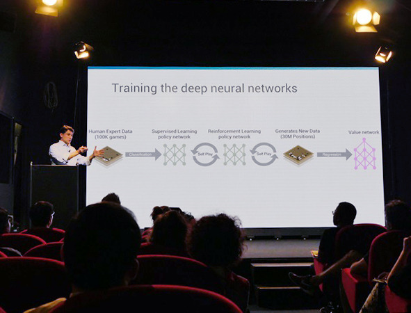 革新的な技術・発明を表彰するイノベーションライオンズでは、受賞候補39チームによる公開プレゼンテーションを行います。プレゼンは朝9時から夜18時すぎまで、2日間かけて行われました。ここでは、グランプリを獲得したGoogle DeepMindのAIによる囲碁プログラム"AlphaGo"(アルファ碁)のプレゼンを紹介します。