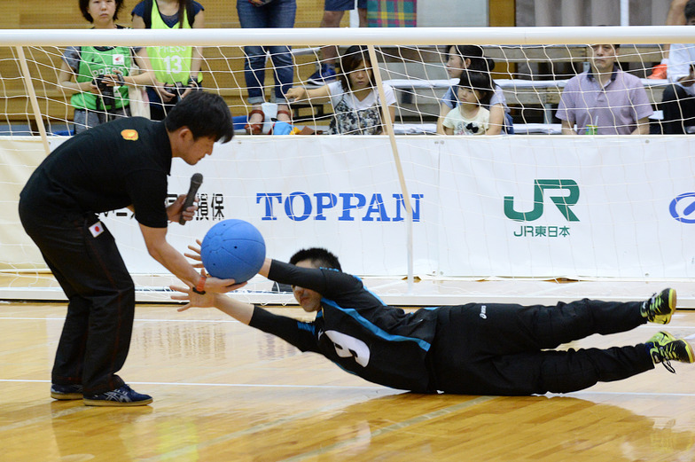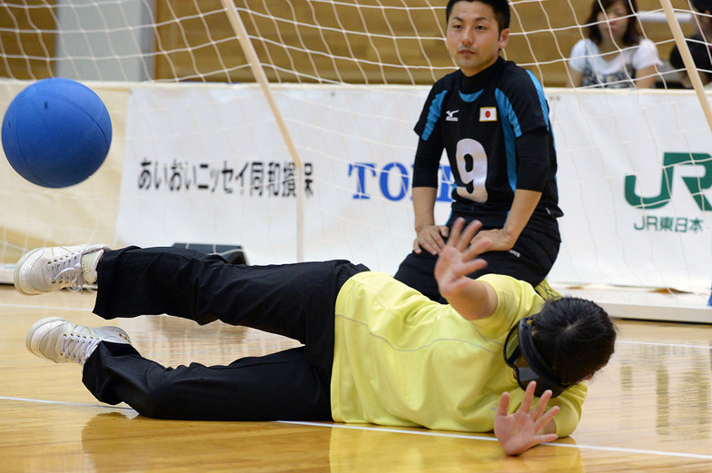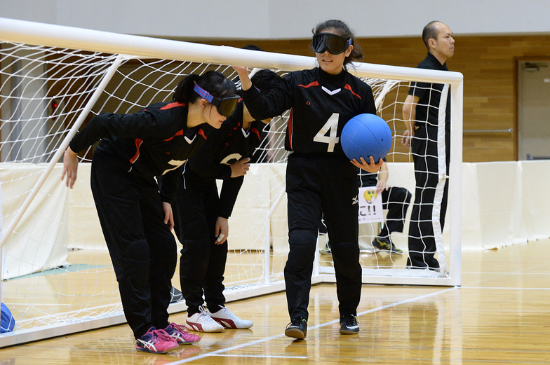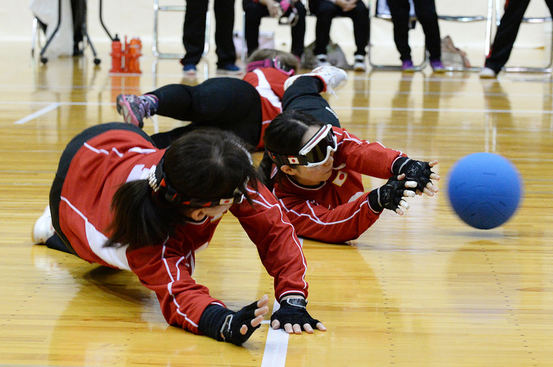 ゴールボールは、視覚障がい者が男女別に行うチームスポーツで、鈴の入ったボールを互いに投げ合い、得点を競う対戦型競技。ボールの転がる音や選手同士の掛け声、相手の動く物音、床の振動やラインの感触など、視覚以外の感覚を研ぎ澄まして戦うパラリンピック競技だ。選手は、障がいの程度によって競技力に差が出ないように、アイパッチを貼りアイシェードを着用、徹底して視覚がふさがれた状態でプレーする。