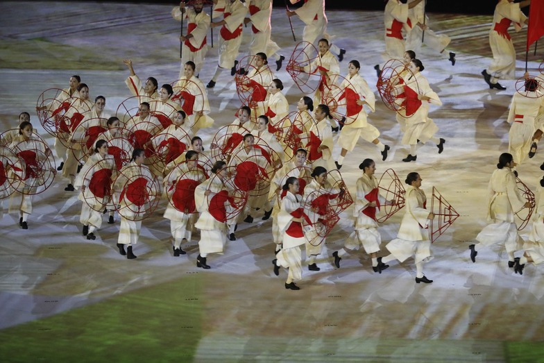 中でもビルが次々に建設されていくシーンでの、プロジェクションマッピングとパフォーマーの連動や、飛行機がスタジアムを離陸し、リオの上空を夜間飛行する演出は圧巻だった。また、日本を象徴する舞踊も行われ、ブラジルにおける日系社会の影響力の大きさがうかがえた。