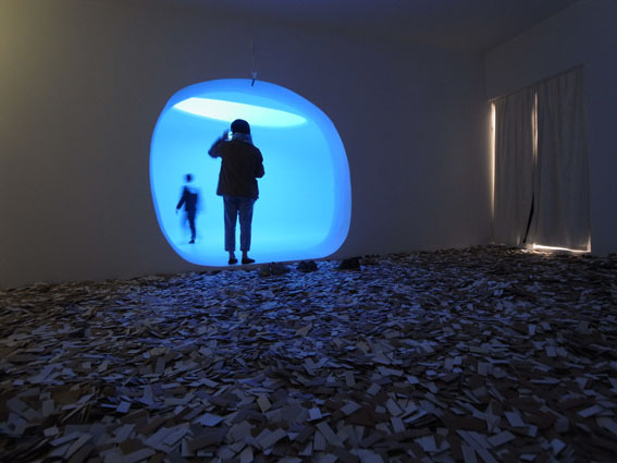 二つ目が何になるかというのはすごく重要で、建築家の谷尻誠さんとやったときだと、前室の床に段ボールのチップを敷ことで、足から感じる感覚をまず変えちゃう、ということを谷尻さんがデザインしました。その空間に入る前の心の準備みたいなことかもしれないんですが、五感のうちの視覚は当然僕がやるとして、その次の第二感、第三感をちゃんと意識してコントロールするというのをやらないとうまくいかないですね。毎回違うんですけどね。何をターゲットにするかというのは。