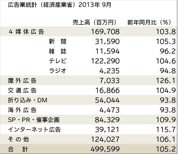 広告業統計(経産省)売上高が5.2%増―9月―