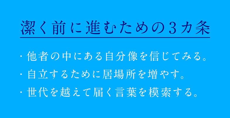 この場合の「人の流れに乗る」ということはつまり、「人から必要とされる」と言い換えられるかもしれません。他者から必要とされることを信じながら、嫌な方にいきそうになったら、そうではない最良の流れを模索していく。「嫌なことをやらない努力」という言葉がとても腑に落ちました。