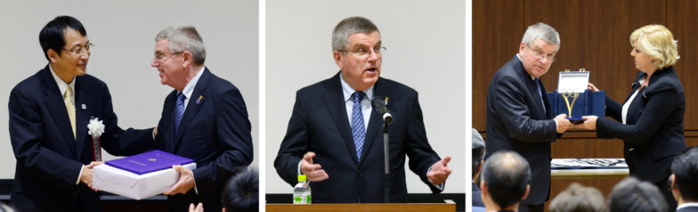 筑波大は10月20日、同大の東京キャンパス文京校舎で「トーマス・バッハIOC会長 来日記念特別式典」(主催=同大つくば国際スポーツアカデミー〈TIAS〉共催=東京オリンピック・パラリンピック競技大会組織委員会)を開催した。