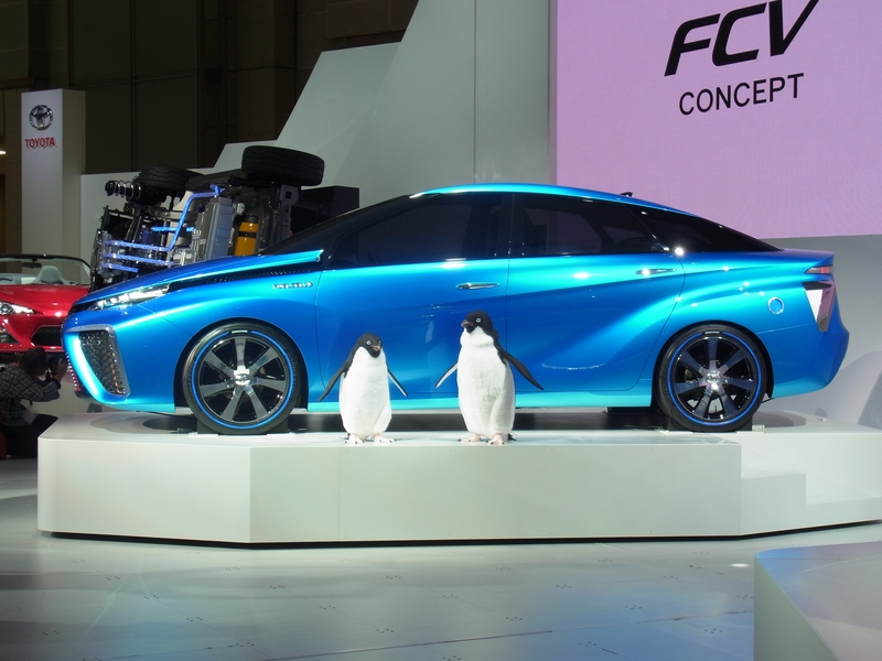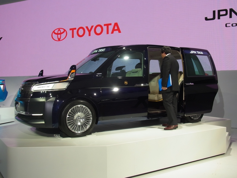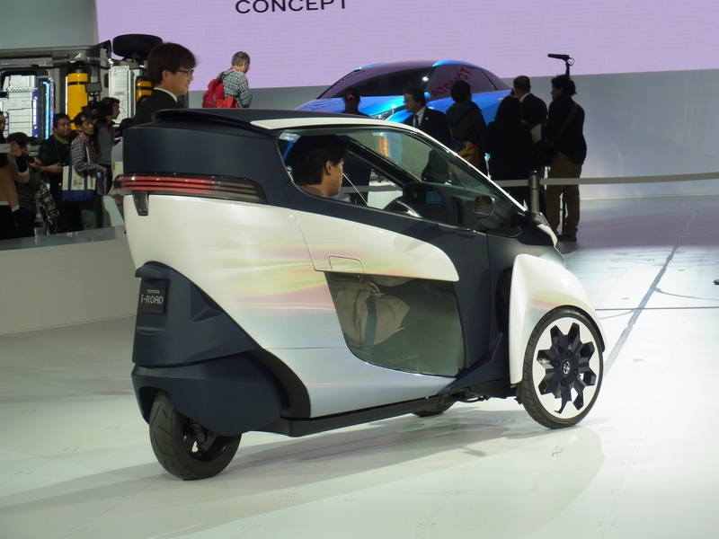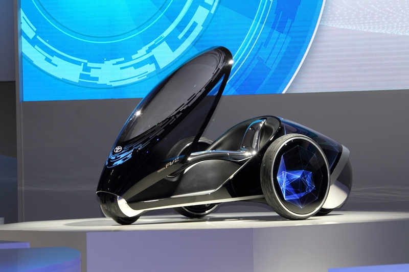 ブースでは、セダンタイプの次世代燃料電池自動車(FCV)のデザインコンセプト「TOYOTA FCV CONCEPT」やドライバーの体重移動により運転操作ができるなど未来の愛車を具現化したコンセプトカー「TOYOTA FV2」、日本の街の風景を変える次世代タクシーのコンセプト「JPN TAXI Concept」などを展示・紹介、前2輪、後1輪でバイクの使い勝手とクルマの快適性・安定性を両立したパーソナルモビリティ「TOYOTA i-ROAD」のデモ走行も実施した。