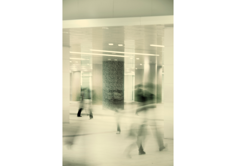 高層ビルが林立し、碁盤目のようなアスファルトの道路が整然と続くオフィス街。男性も女性もスーツを着て足早に行き交うが、そこに会話はない。