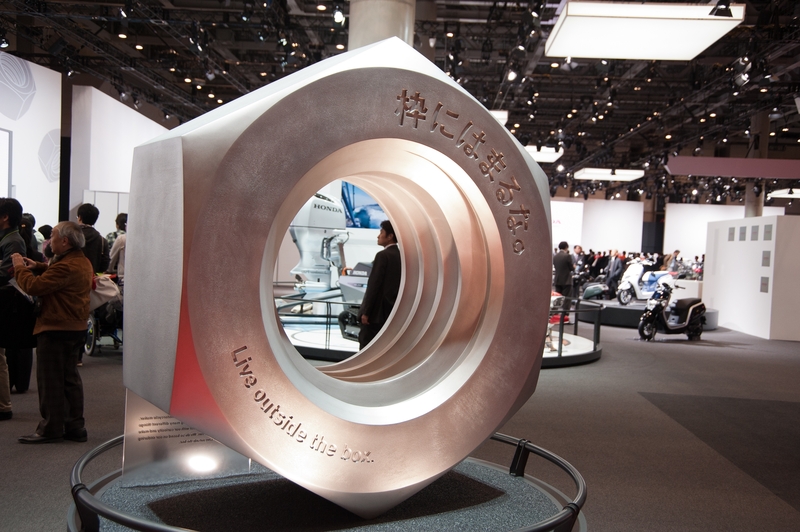 ホンダは第43回東京モーターショー(~12月1日、東京ビッグサイト)で、「枠にはまるな。(Live outside the box.)」をテーマに出展。単一ブランドで最大となる総面積3000平方メートルを超えるブースで、コンセプトモデルを含む二輪車、四輪車などを多数、展示・紹介した。