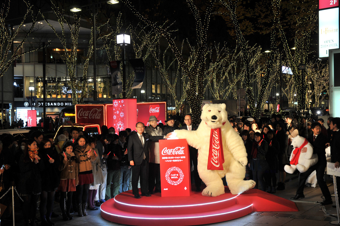 日本コカ・コーラは 11月28日、「コカ・コーラ 表参道イルミネーション2013 ~ハッピーをあげよう~ 」点灯式 PRイベントを東京・表参道の日本看護協会前で開催した。