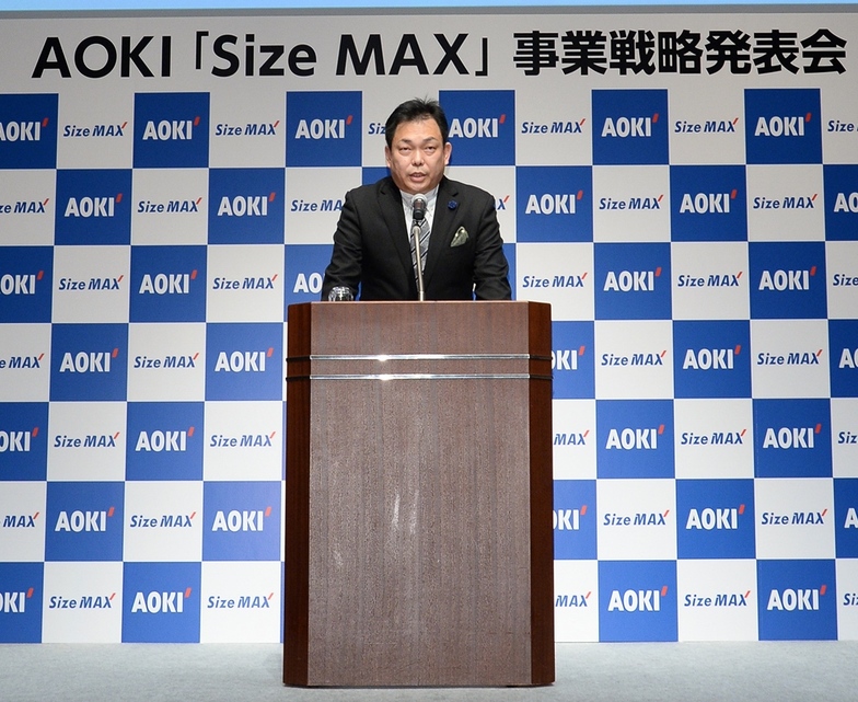 AOKIホールディングスの青木彰宏社長は「サイズマックスでは、メンズ・レディースの2L~8Lまでに特化したスーツ、フォーマル、カジュアルを取りそろえている。4月には熊本、埼玉の両県に単独店を出店する他、以降も店舗数の拡大に努め、第3の柱として位置付けたい」と話し、強化の理由として“大きなサイズでもファッションを楽しみたい”という顧客ニーズや、そのニーズを満たす独自のノウハウ・データがあること、大きいサイズ市場における成長の余地が十分にあることを挙げた。