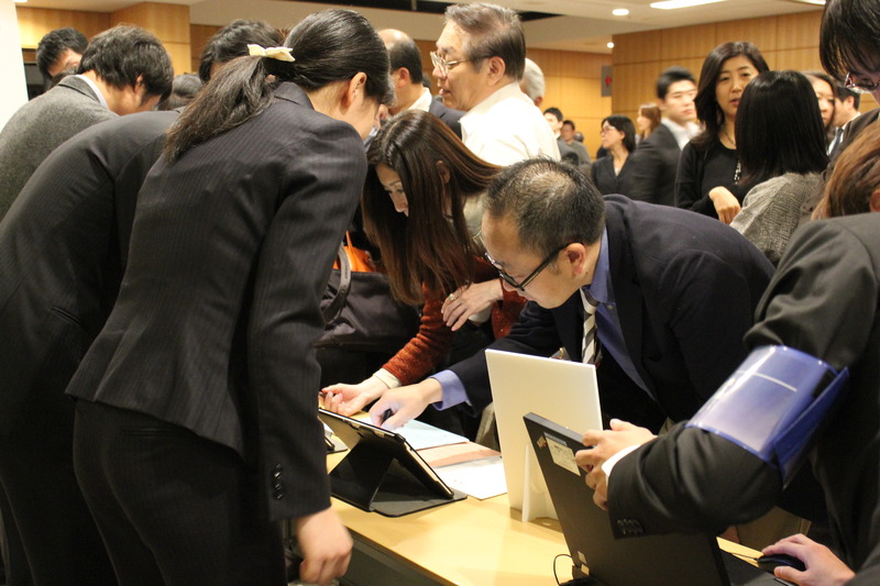 なお、ACR/exは導入に当たって、調査デバイスをこれまでの質問紙から、タブレット端末による電子調査票に変更。約1万人の対象者にNTTドコモの通信機能付きタブレット端末を配布してアンケートを実施することで、データの量、提供スピードが大幅に向上する。生活者調査を実施する上で、個人情報保護は最重点課題の一つ。同社によれば、NTTドコモとの綿密な連携により「万全のセキュリティー対策を施すことができた」と評価している。セミナーでは、調査で実際に使用されるタブレット端末を展示し、アンケート画面の体験コーナーが設けられた。セミナーの合間にタブレット端末に触れてみようとする参加者の姿が多くみられ、関心の高さがうかがわれた。