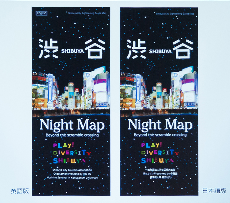 2017年1月に「インバウンド向けのSHIBUYAマップを作ろう!」をテーマにした「茶ッカソン」で優勝したチームのアイデアが、同協会の正式プロジェクトに採用され、優勝メンバーや同区にある國学院大の学生も参加し、同地の夜の魅力を世界に伝えるマップを制作した。