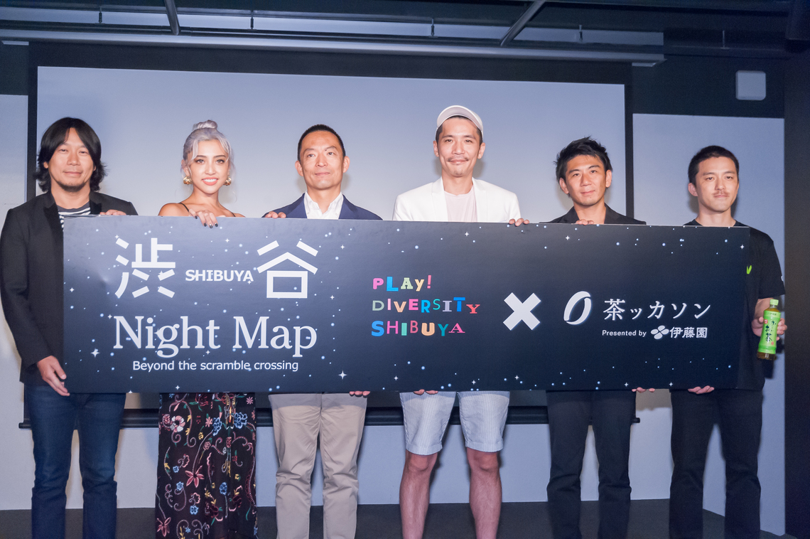 渋谷区観光協会と飲料メーカーの伊藤園、國学院大星野ゼミは、共同プロジェクトとして東京・渋谷区の“夜”に焦点を当てた観光マップ「SHIBUYA Night Map」を制作し、6月23日に同区のSHIBUYA CASTで完成披露記者会見を開催した。