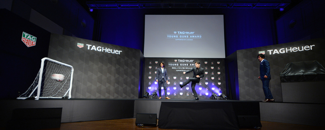 スイスの高級時計ブランド「タグ・ホイヤー」は、サッカーJリーグの協力で、23歳以下(アンダー23)の選手から11人を選抜したたえる賞「TAG Heuer YOUNG GUNS AWARD」を創設し、6月27日に東京・港区の青山スパイラルホールでキックオフイベントを開催した。同賞は、Jリーグの次世代を担う若い選手層の育成と今後のリーグの発展を目的に、Jリーグのチームに所属するアンダー23の選手(ヤングガン)から11人を選抜し表彰するもの。