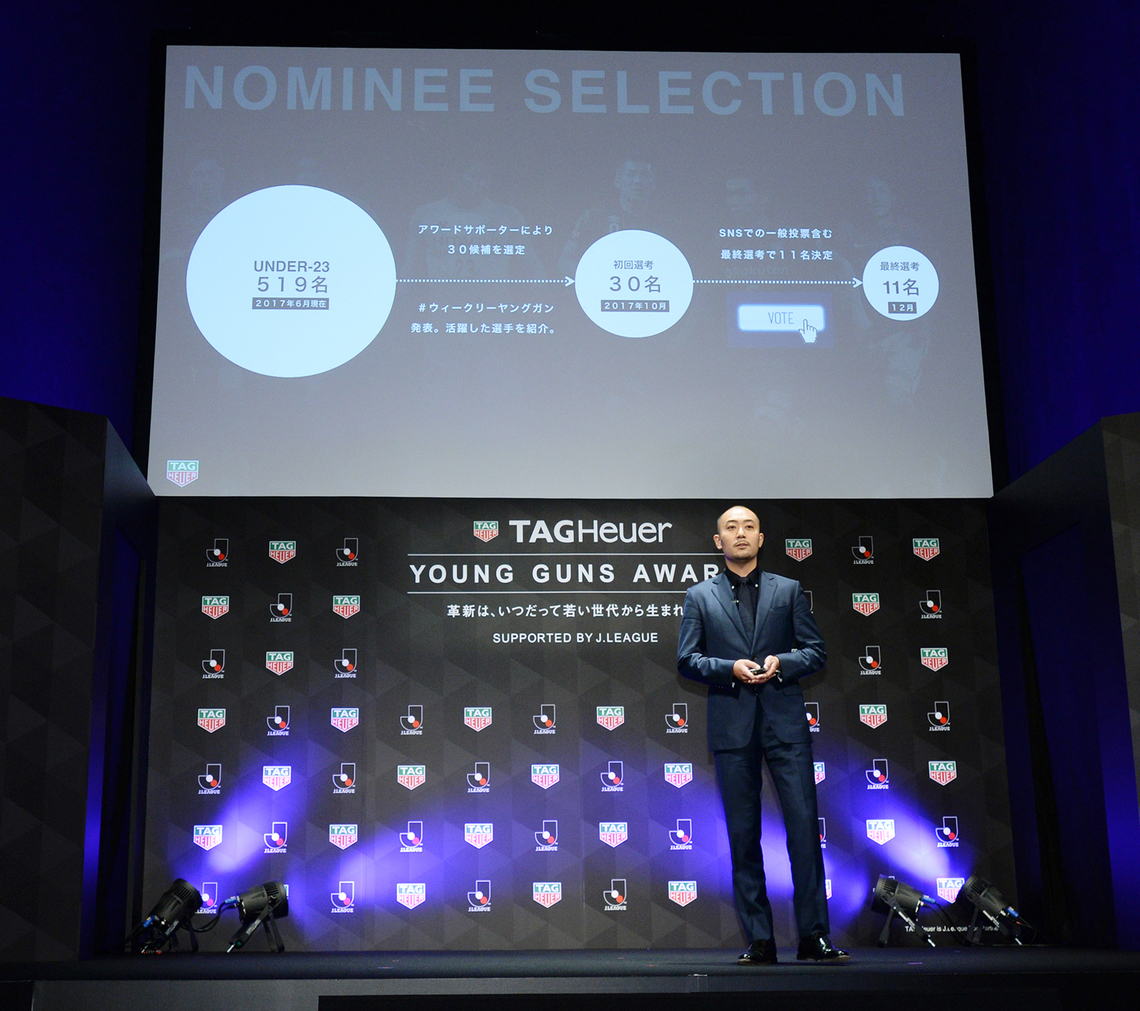 Jリーグの村井満チェアマンと原博実副理事長はビデオで「タグ・ホイヤーとJリーグが一緒にできることを考えた結果、同賞の創設が実現した。大変楽しみにしている」「若い選手はこのアワードを目標に努力し、世界に羽ばたいてほしい」などメッセージを寄せた。
