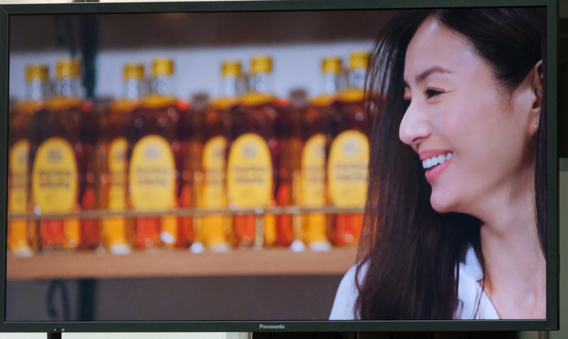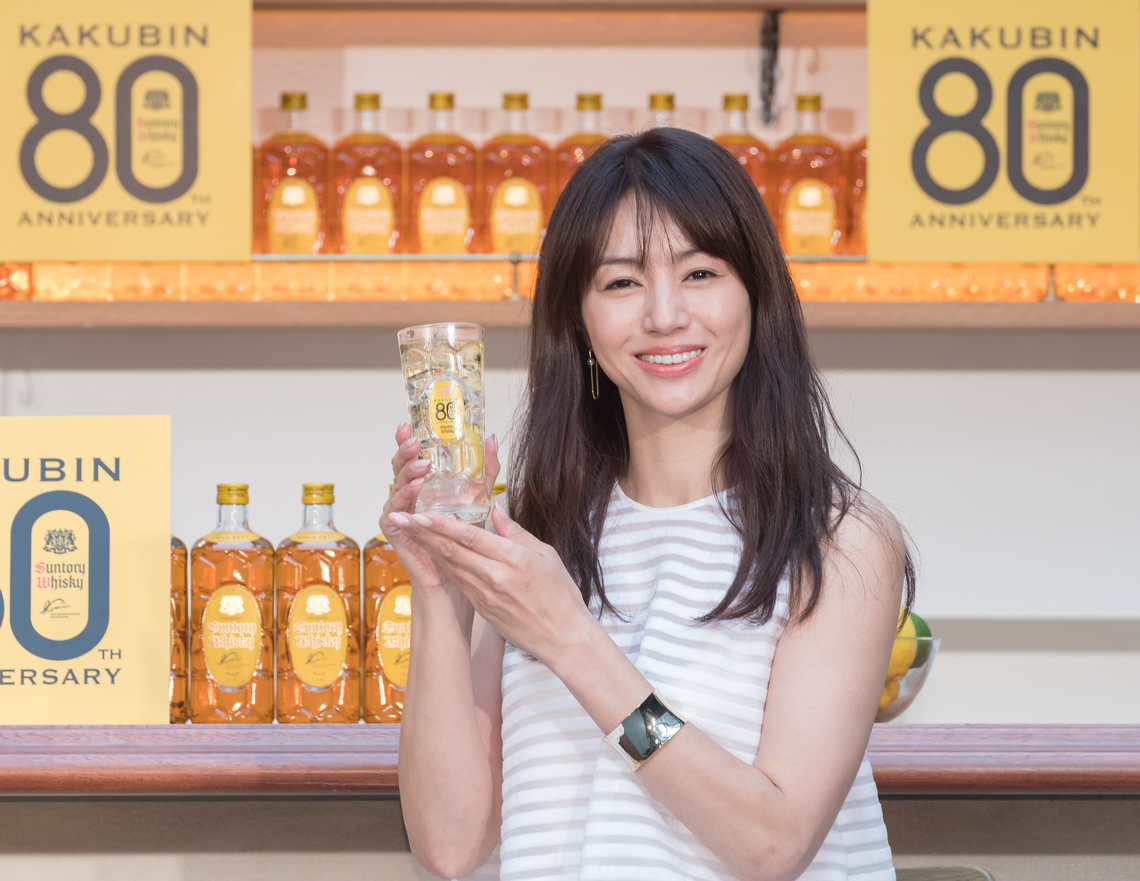 9月2日から放送される角ハイボールの新テレビCM「新顔」編の上映後、2014年からスタートしたシリーズCMでバーの店主を演じる女優の井川遥さんが登場した。