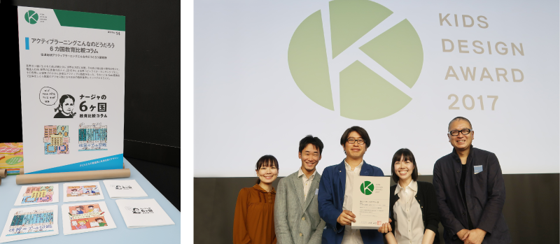 電通総研アクティブラーニングこんなのどうだろう研究所が「アクティブラーニングこんなのどうだろう6カ国教育比較コラム」で奨励賞キッズデザイン協議会会長賞を受賞した。同コラムはウェブ電通報に掲載されたもので、旧ソ連で生まれたキリーロバ・ナージャ氏が両親の転勤先であるイギリス、フランス、アメリカ、カナダ、日本、ロシアの教育の違いを鮮やかに映し出し、好評を博した。既に世界で行われているアクティブラーニングの多様性が教育者らの新たな試みへの意欲をかき立てる点が評価された。